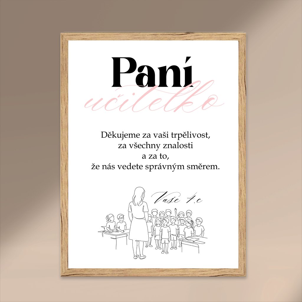 Nechte se unést kouzlem vzpomínek a vytvořte si jedinečný plakát. Plakát pro paní učitelku je ideálním způsobem, jak vyjádřit svou vděčnost paní učitelce za všechny ty chvíle. Tento elegantní dekorativní prvek může ozdobit jakoukoliv místnost.