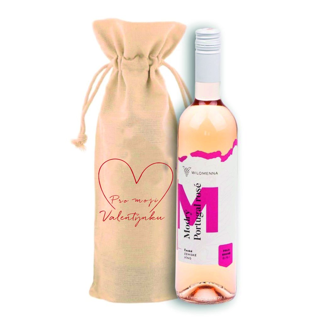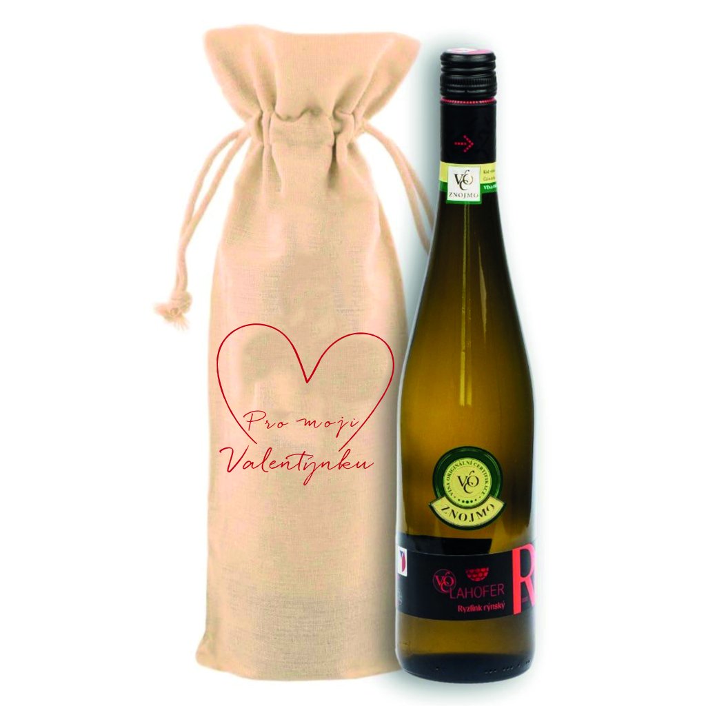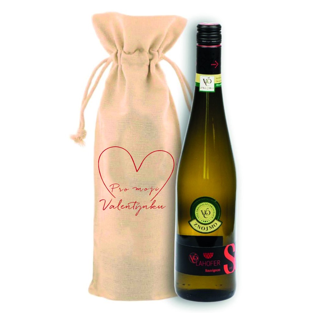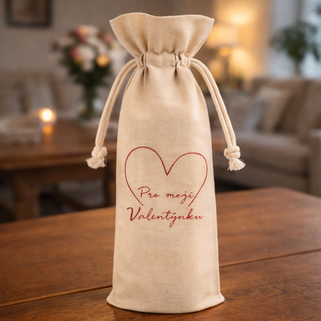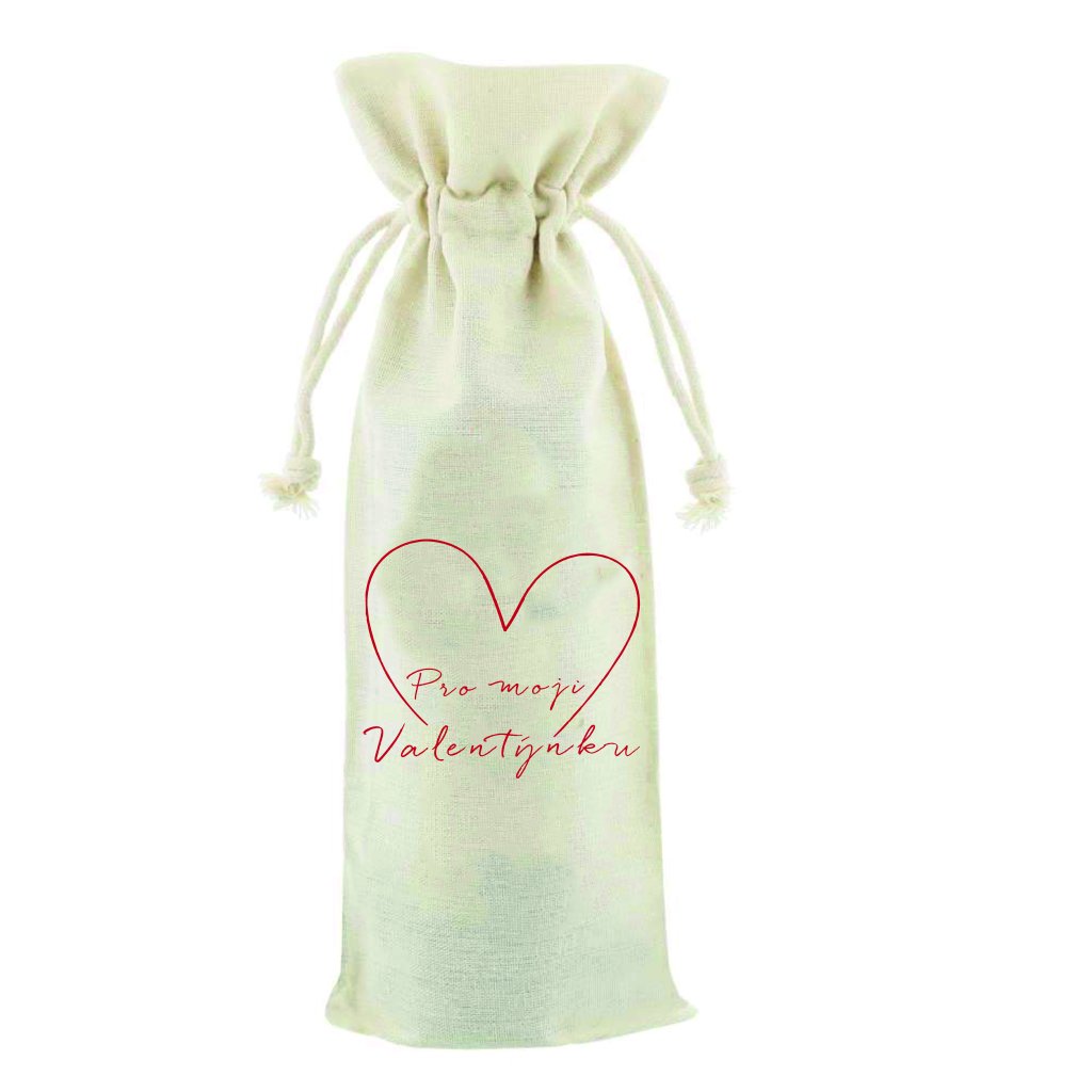 Plátěný pytlík s vínem - Pro moji Valentýnku - SRDCE