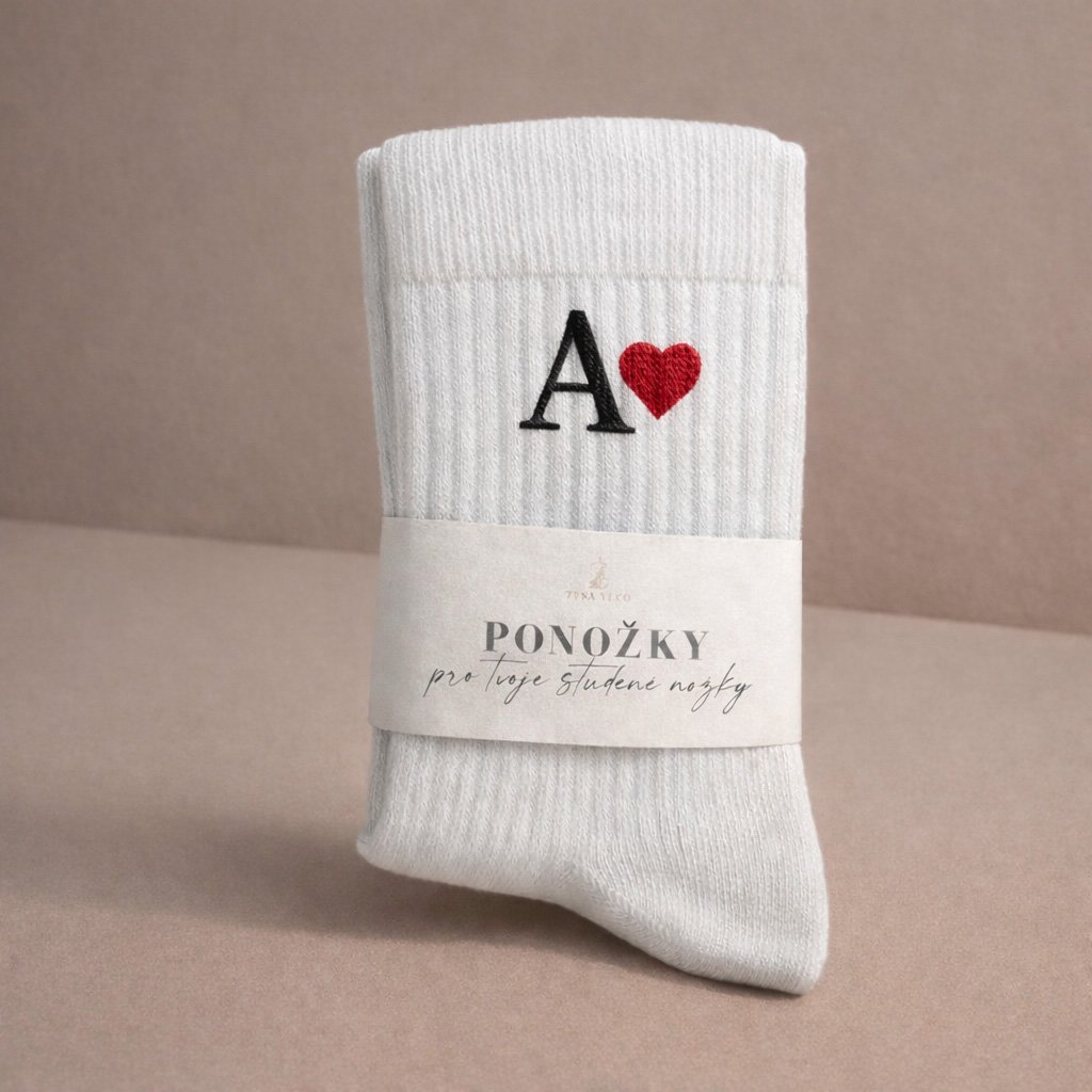 Ponožky s vyšitím INICIÁLŮ a SRDCE, pro ženu