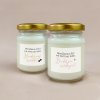 Sójové svíčky s elegantním zlatým víčkem a těmi nejdůležitějšími otázkami “Budeš má svědkyně?” “Budeš můj svědek?”