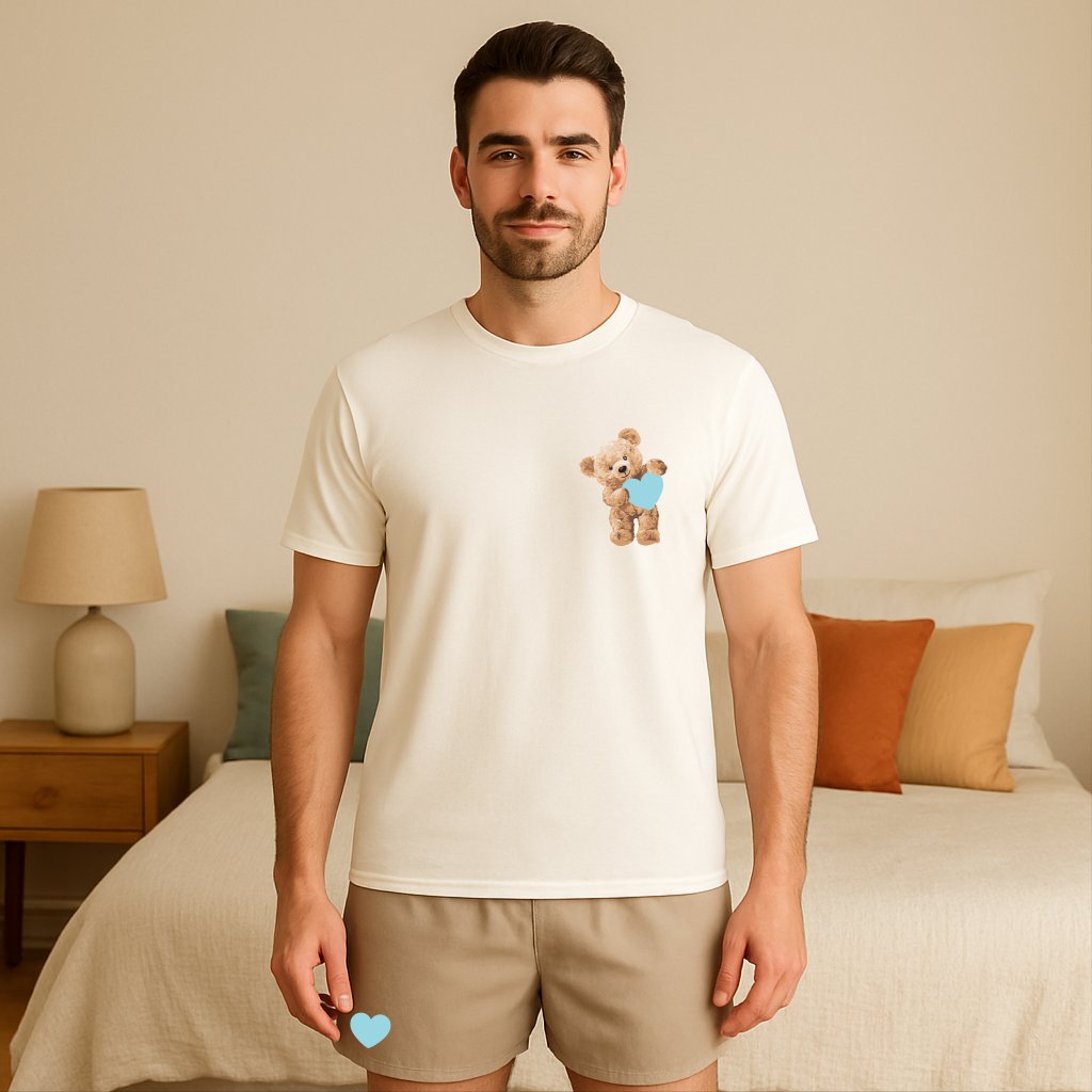 Pyžamový set s potiskem MEDVÍDKA pro muže je ideální volbou pro svou polovičku. Tento kvalitní komplet obsahuje bavlněné trenky a tričko s krátkým rukávem, zdobené motivem medvídka. Perfektní dárek k Valentýnu, narozeninám nebo jen tak pro radost.