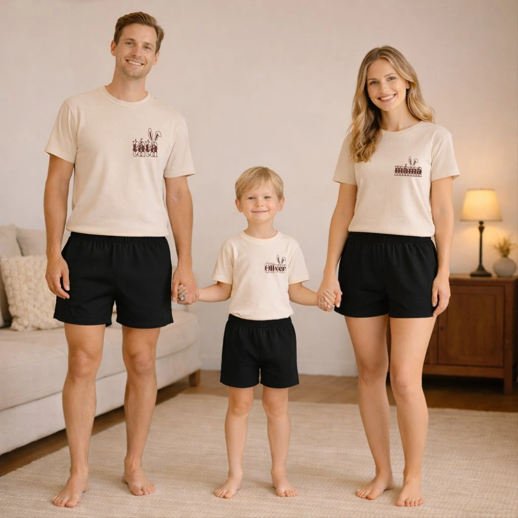 Představujeme vám pohodlnou soupravu trička z biobavlny a velmi dobře padnoucích bavlněných trenek pro celou rodinu. Tento set s veselým motivem zajíčka a vlastním jménem dítěte na přední straně je ideální volbou pro mámu, tátu i dítě. V této slušivé soupravě se budete cítit velmi příjemně, ať už ji nosíte doma v létě nebo jako pyžamo. Tento komplet je skvělý nejen na spaní, ale také do školky, na tábor nebo školu v přírodě. Vaše děti si toto pyžamo mezi sebou určitě nezamění. Pro menší děti je tato soupravička vhodná i na léto do kočárku.