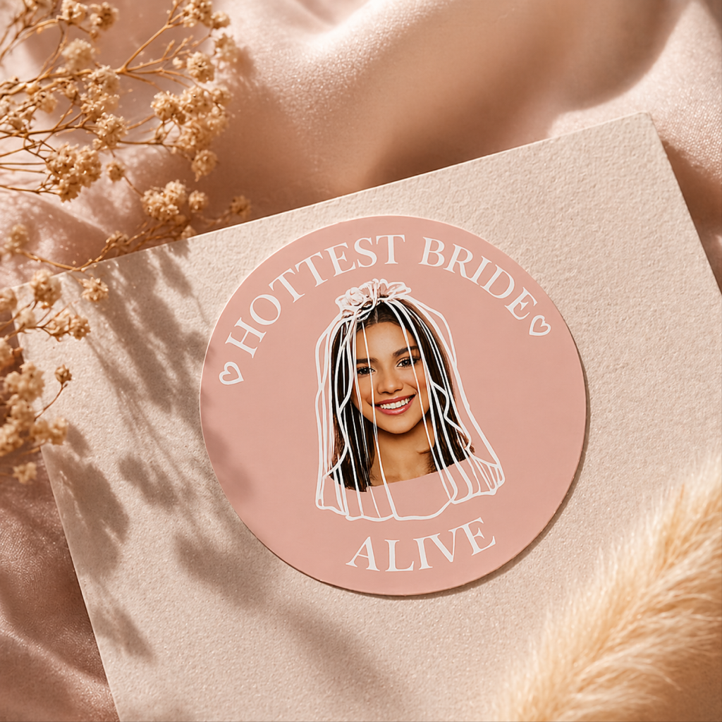 Samolepky s vlastní fotografií jsou perfektním doplňkem na rozlučku se svobodou, který zaručeně pobaví nevěstu i celý tým. Balení obsahuje 10 kusů samolepek, které kombinují vaši vlastní fotografii, kde Vám přidáme svatební závoj s nápisem „Hottest Bride Alive“