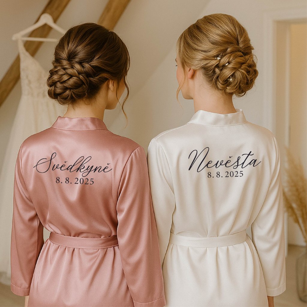 Saténový župánek pro NEVĚSTU a SVĚDKYNI s datem svatby