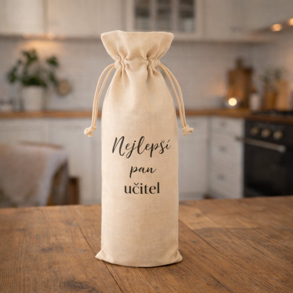 Hledáte originální dárek pro pana učitele? Náš pytlík na víno s potiskem NEJLEPŠÍ PAN UČITEL je ideálním řešením. Tento elegantní pytlík je nejen krásným suvenýrem, ale také praktickým doplňkem k vínu.