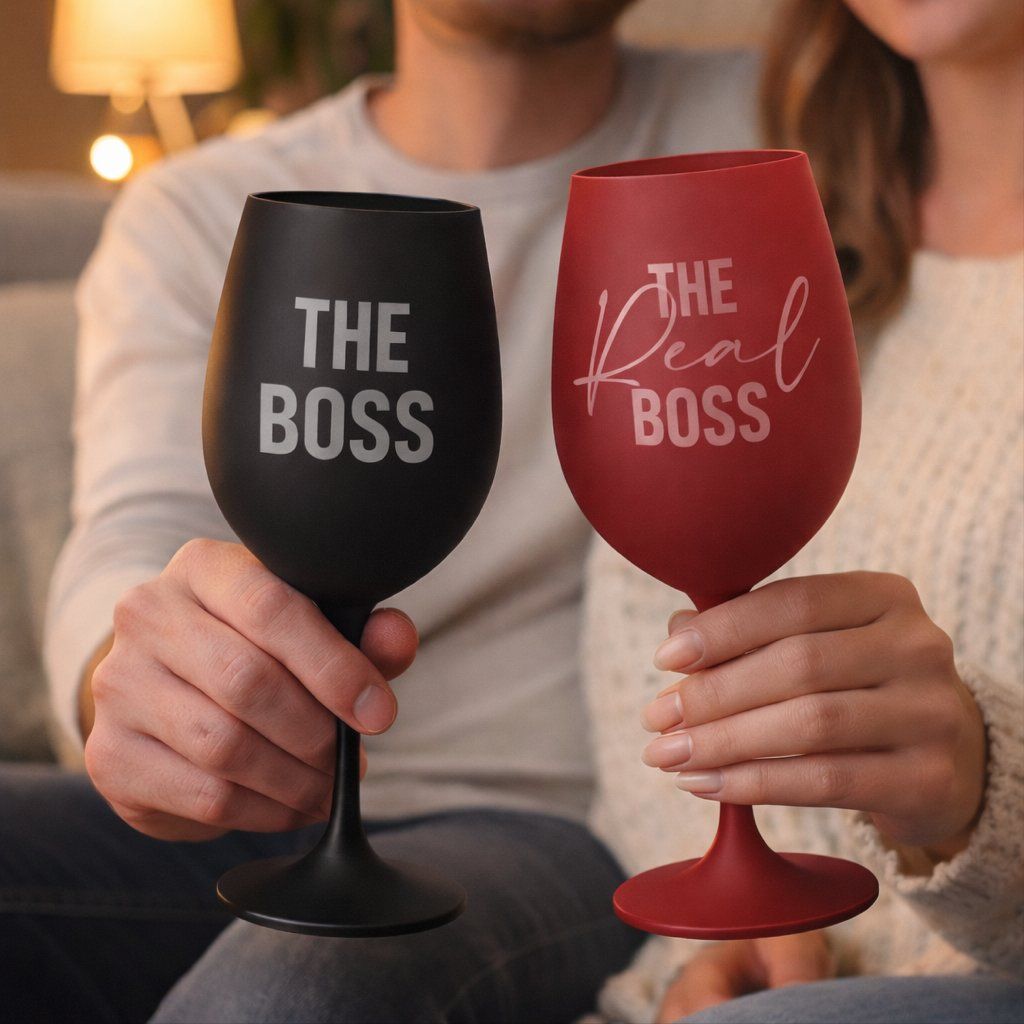 Máte za sebou těžký den, plný povinností, shonu a stresu? Vychutnejte si s partnerem doma skleničku vína, prosecca, či jiného lahodného nápoje ze sady barevných sklenic THE BOSS v černé barvě pro něj a červené nebo růžové pro ni.