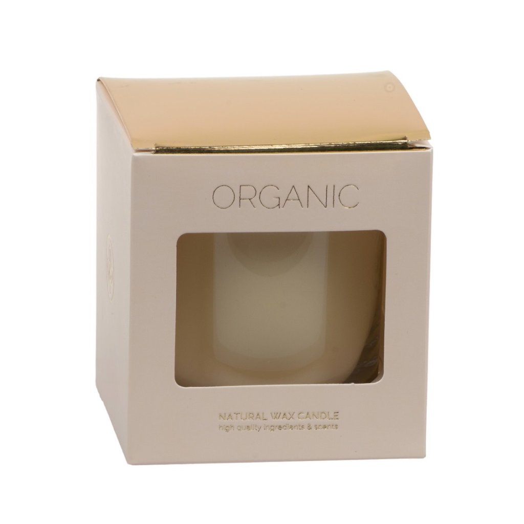 Součástí svíčky je elegantní růžovo-zlatá krabička.