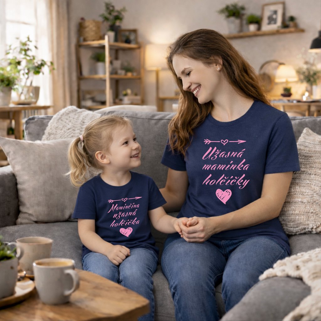 - Gramáž textilu - 160g/m2 pro dítě a 135g/m2 pro maminku - trička díky silné gramáži zachovávají svůj tvar déle než běžný textil