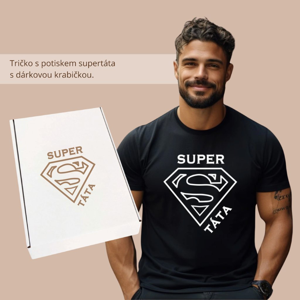Pohodlné a stylové tričko s potiskem SUPER TÁTA je ideální na běžné nošení a skvěle se hodí ke každodenním outfitum. Stylové tričko, které bude táta rád nosit každý den. Objednejte ještě dnes a potěšte svého tatínka.