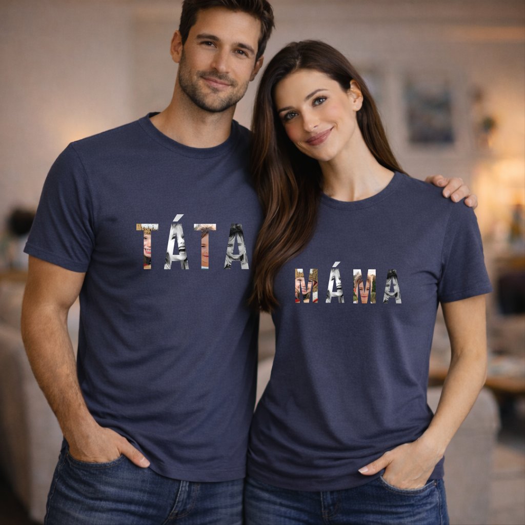 Tričko s potiskem MÁMA a TÁTA z fotografií, pro pár