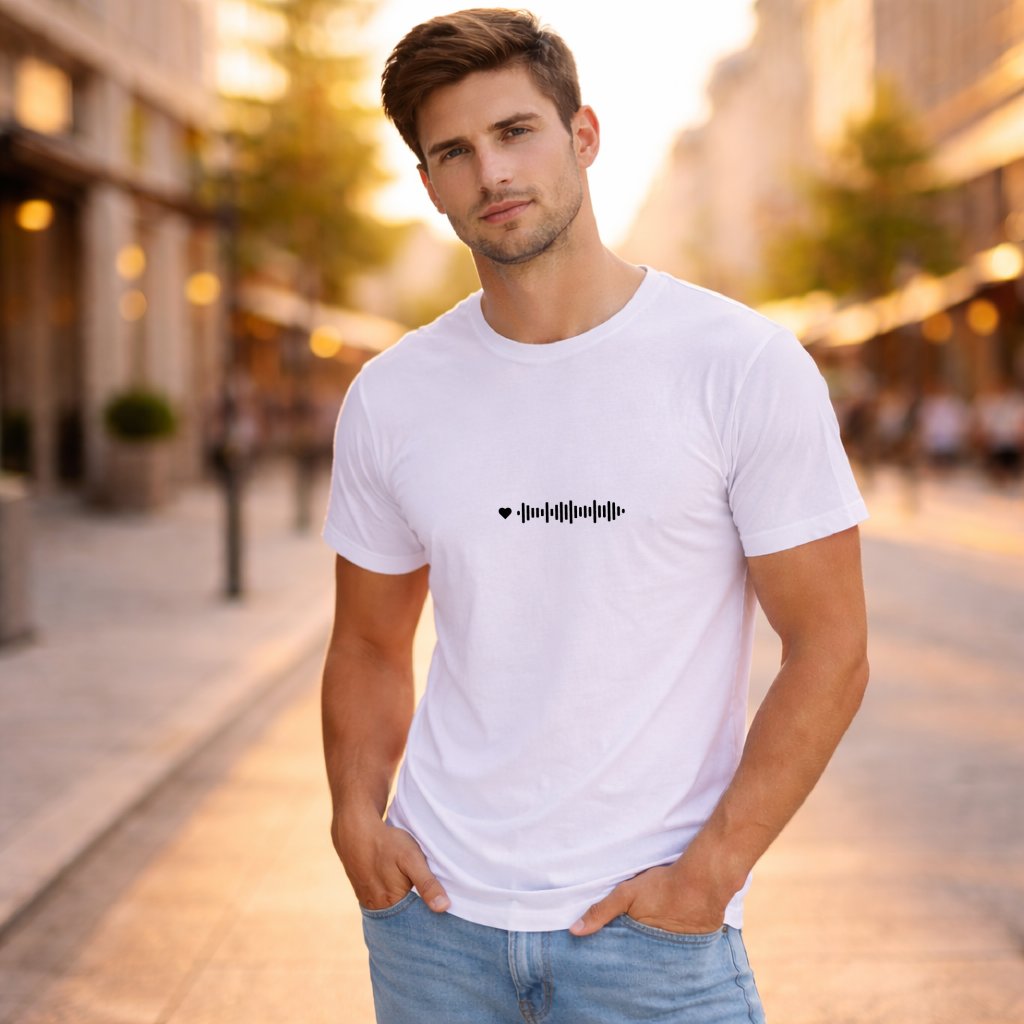 Pohodlné a stylové tričko s potiskem kódu, ve kterém je ukryta píseň, je ideální na běžné nošení a skvěle se hodí ke každodenním outfitům. Stylové tričko, které budou všichni rádi nosit každý den. Objednejte ještě dnes a potěšte svého blízkého.