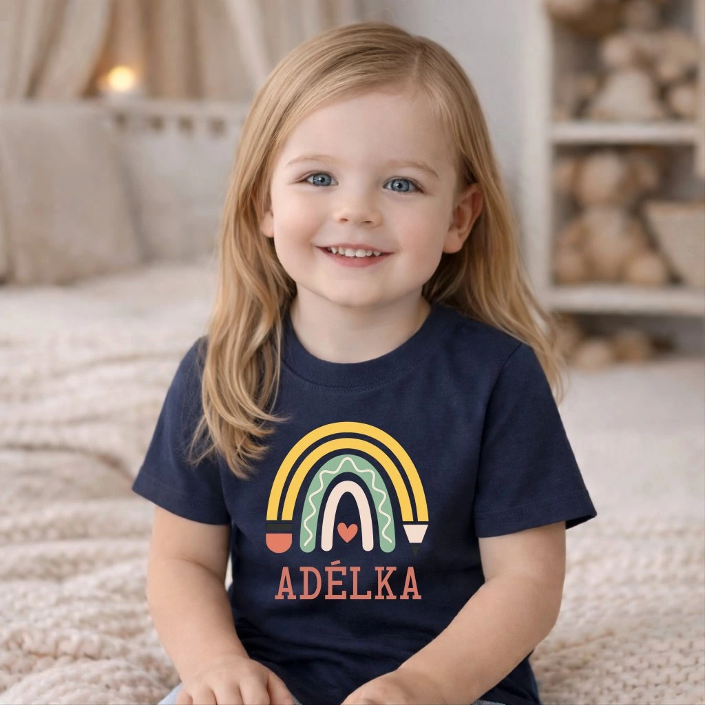 Tričko s potiskem DUHY s TUŽKOU a VLASTNÍHO JMÉNA, pro dítě
