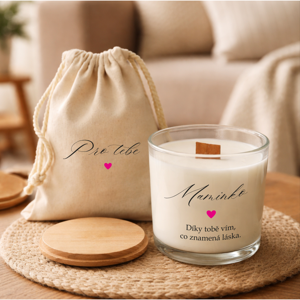 Naše svíčky jsou ručně vyráběné v malé dílně v Beskydech z přírodního sójového vosku, dřevěných knotů a neodolatelných vonných olejů. Dřevěný knot jemně praská a navozuje to správné teplo domova, což činí naše svíčky ideálním dárkem pro Vaší maminku.