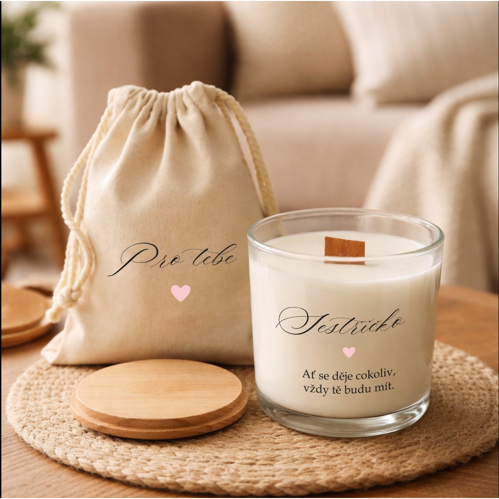 Naše svíčky jsou ručně vyráběné v malé dílně v Beskydech z přírodního sójového vosku, dřevěných knotů a neodolatelných vonných olejů. Dřevěný knot jemně praská a navozuje to správné teplo domova, což činí naše svíčky ideálním dárkem pro Vaší sestřičku.