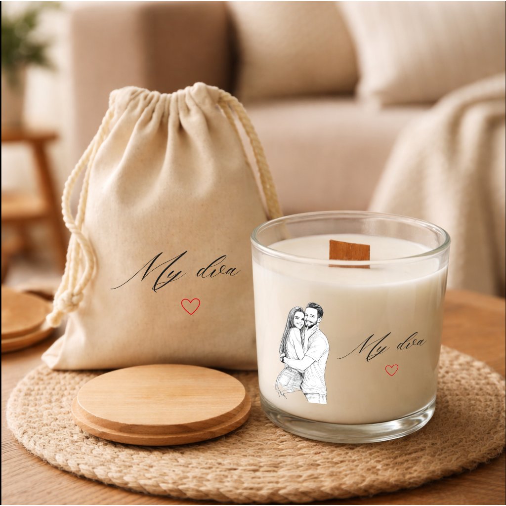 Vonná svíčka s KRESLENOU FOTOGRAFIÍ PÁRU
