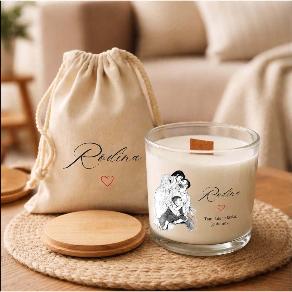 Vonná svíčka s KRESLENOU FOTOGRAFIÍ RODINY