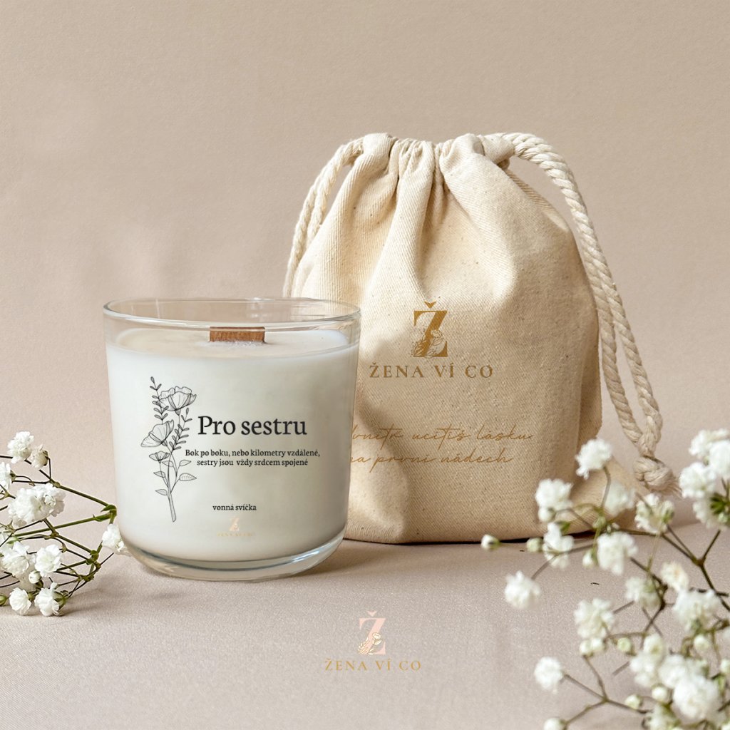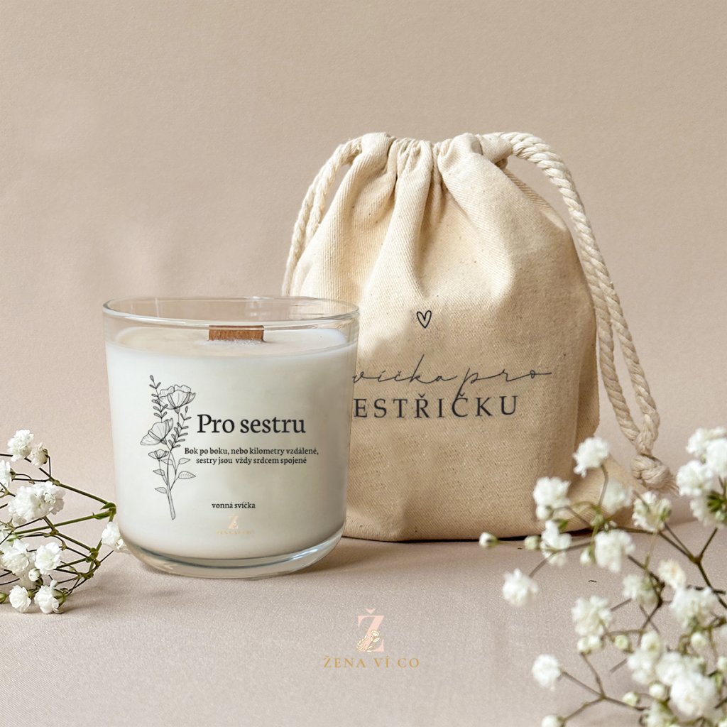 Text na svíčce nelze měnit. Vlastní text můžete zvolit pouze na obal svíčky (bavlněný pytlík).