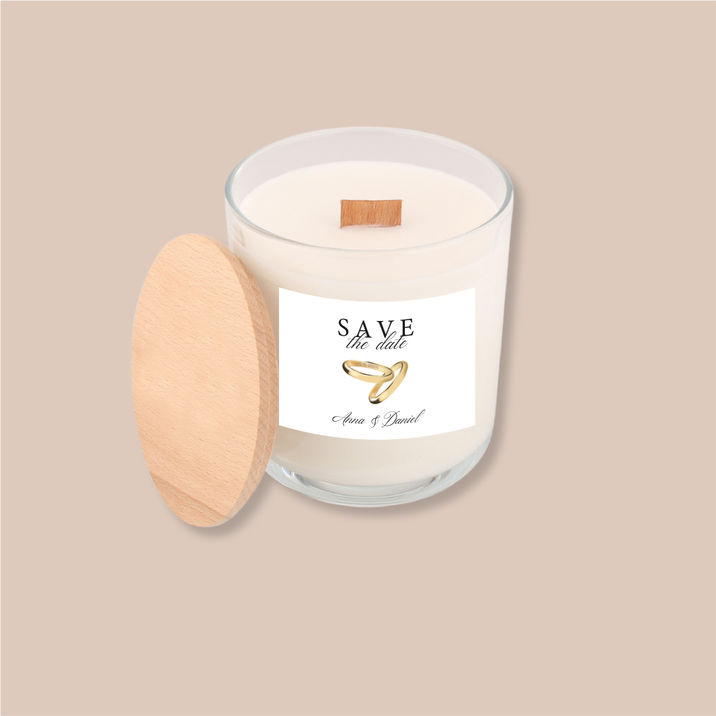 Vonná svíčka SAVE THE DATE se JMÉNY a DATEM SVATBY