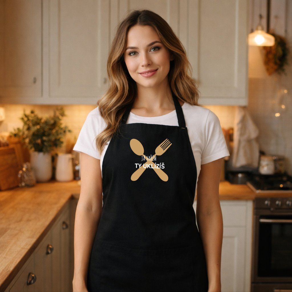 Zástěra s potiskem JÁ VAŘÍM, TY UKLÍZÍŠ