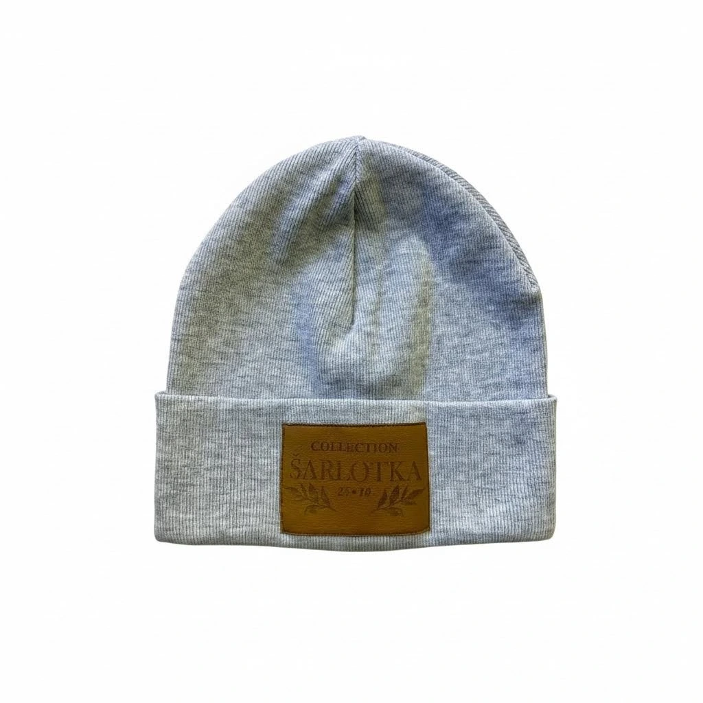 Šedá zimní čepička s koženkou Šarlotka, ve velikosti 3 - 5 let se už těší na svého nového majitele!