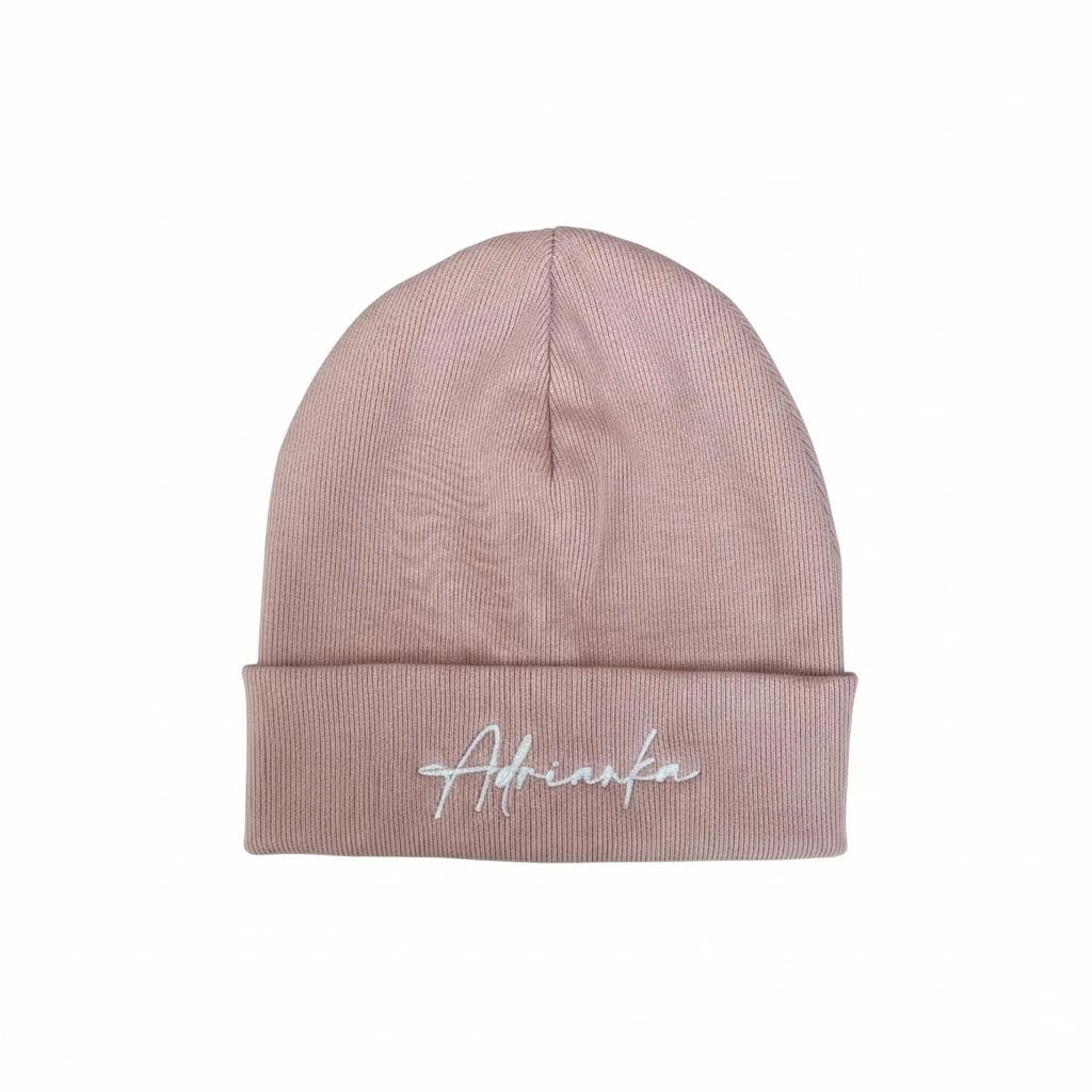 Růžová zimní čepička s výšivkou Adrianka, ve velikosti 3-5 let se už těší na svého nového majitele!