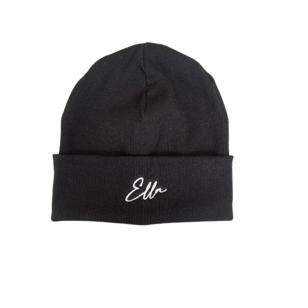 Černá zimní čepička s výšivkou Ella, ve velikosti 3-5 let se už těší na svého nového majitele!