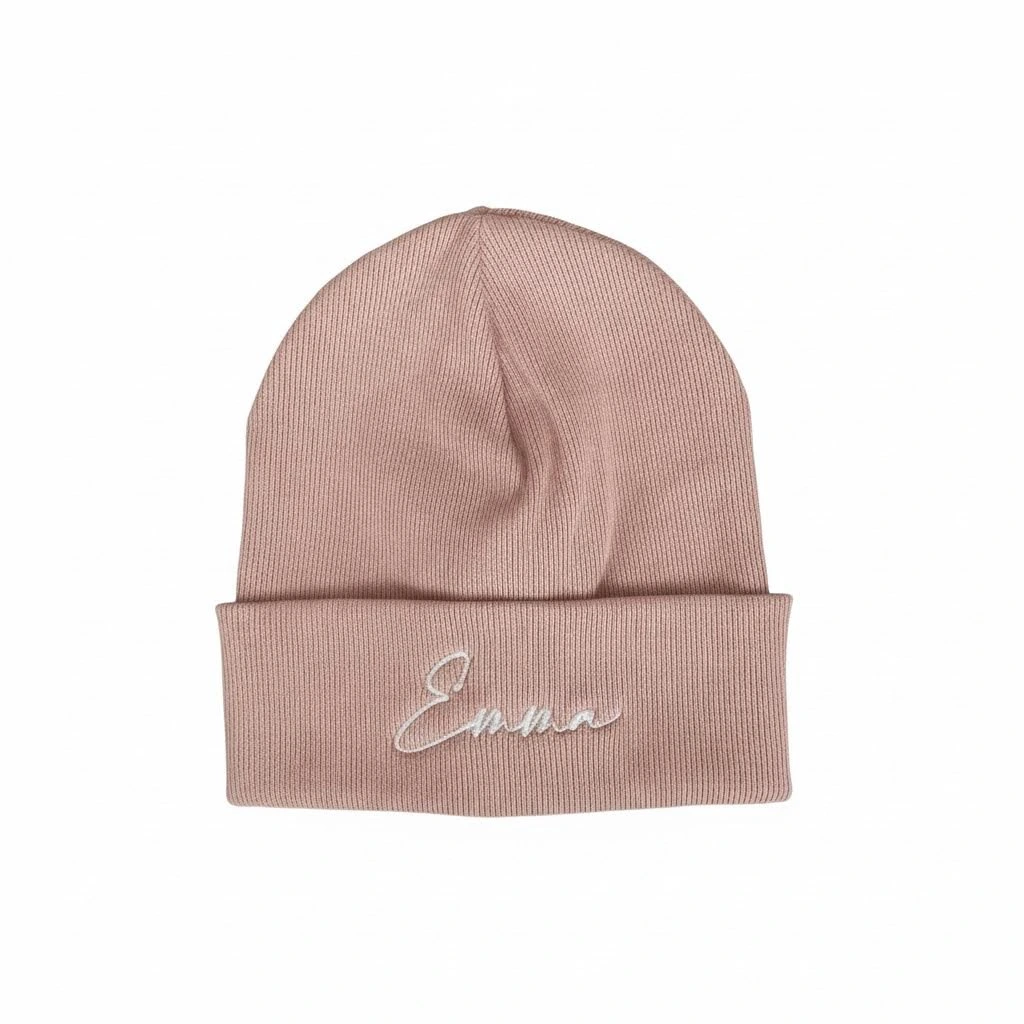 Růžová zimní čepička s výšivkou Emma, ve velikosti 5 měsíců - 3 roky se už těší na svého nového majitele!