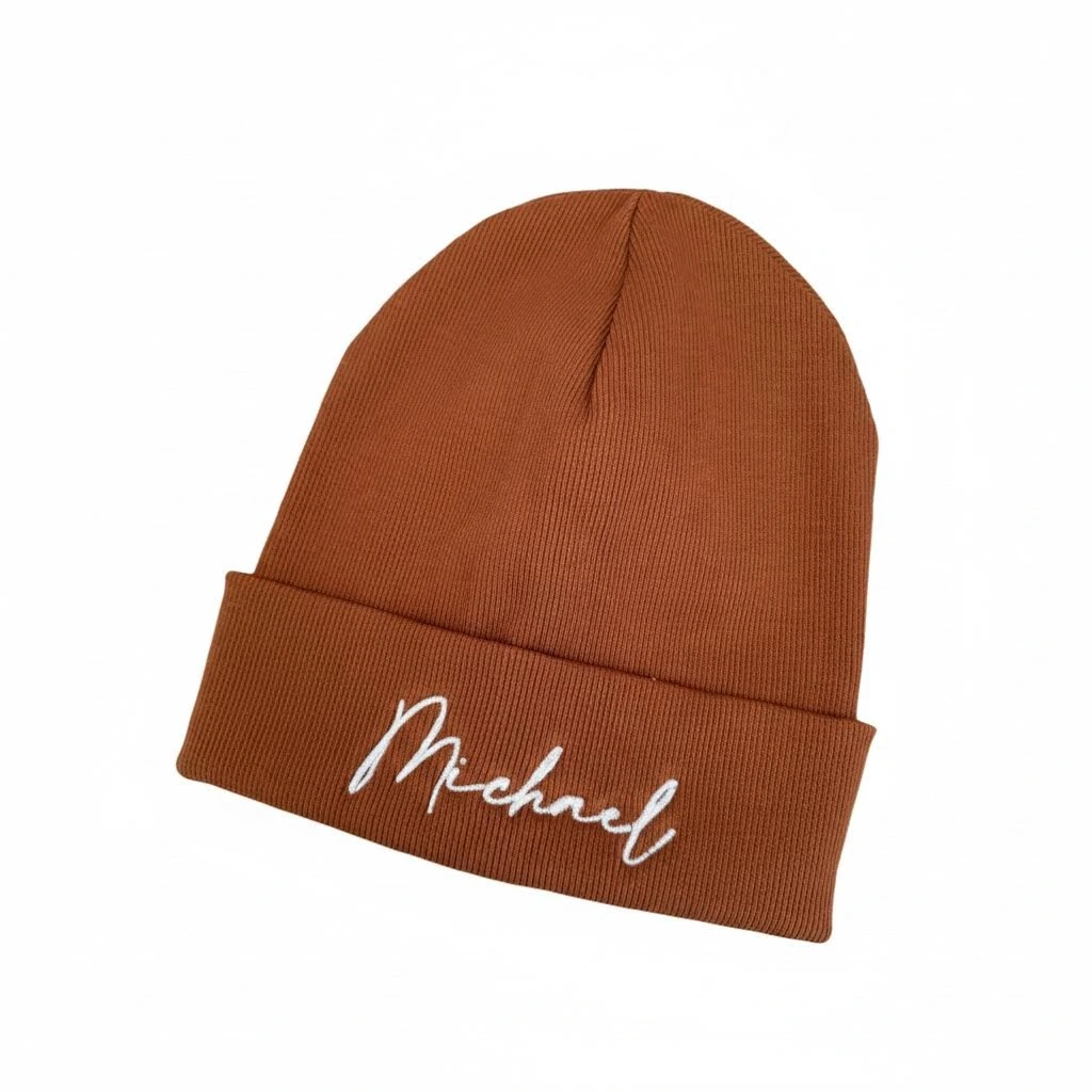 Hnědá zimní čepička s výšivkou Michael, ve velikosti 3 - 5 let se už těší na svého nového majitele!